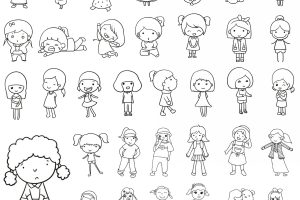 女孩的发型多样,衣服款式丰富。 1.画出脸部轮廓。 2.画出发型。 3.画出五官。 4.画出上半身。 5.画出…