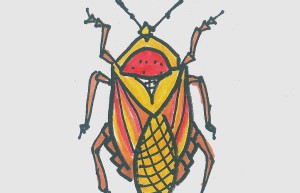 甲虫身体外部有硬壳,前翅是角质,厚而硬,后翅是膜质,如金龟子、天牛、象鼻虫等。 1.画出甲虫的身体。 2.画出…